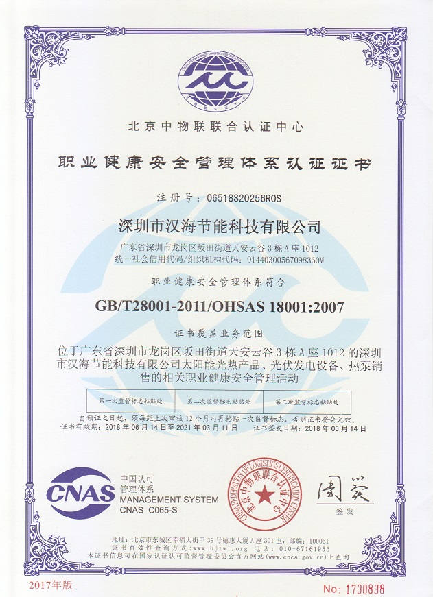 深圳市漢海節能科技有限公司成立于2011年,注冊資金6000萬元,總部設在深圳,是一家集設計、研發、施工于一體的專業化從事太陽能中央熱水工程、熱泵中央熱水工程、中央空調、光伏發電、水處理等新能源及節能環保行業的綜合服務商和工程商。在將近10年的發展歷程中,始終走在行業發展的前沿,是專業從事太陽能光熱、光伏,空氣源、太陽能熱水工程、水源熱泵,中央空調,水處理產品的設計、安裝、售后服務為一體的高新技術企業;是專業提供太陽能中央熱水工程、熱泵中央熱水工程、中央空調工程、光伏發電工程、水處理工程、太陽能熱水工程等全面解決方案的供應商和工程商,產品涵蓋太陽能集熱器、空氣源熱泵、水源熱泵、中央空調、光伏組件、太陽能熱水工程等,是新能源的倡導者和推動者。公司成立以來,始終秉承“誠信、責任、專業、高效”的服務宗旨,以市場需求為導向,以為客戶創造價值為己任的精神,不斷開拓創新,通過多年的快速發展,公司綜合實力躍居行業前列。漢海擁有一支經驗豐富、善打硬仗的專業高效團隊;擁有一批專業的高級工程師、中級工程師、二級建造師、造價工程師、電氣設計師、給排水設計師;擁有一批機電、安防、水、電等專業技術施工和售后人員,配備先進齊全,實力雄厚,技術領先。漢海以質量樹信譽、以工藝立標桿、以管理創效益、以服務得人心,工藝水平在業界獨樹一幟,成為行業模仿的典范。漢海承建的機電工程(設計、施工)涉及星級酒店、賓館、高檔辦公樓、花園別墅、住宅小區、學校、水療中心、工廠等各種類型的工程,工程項目遍布全國各地。漢海將致力于成為全球信賴的新能源綜合服務商,為客戶提供新能源的全方位解決方案。未來,漢海將依托國家政策,積極開拓粵港澳大灣區、中國特色社會主義先行示范區市場及“一帶一路”沿線國際市場,推動新能源的新輝煌。